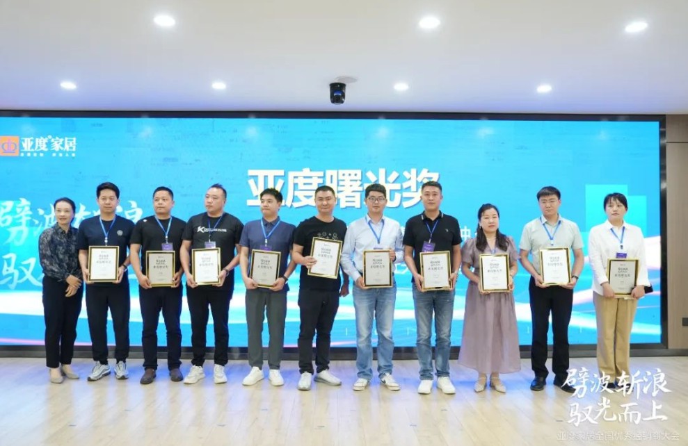 下午场最激动人心的环节是亚度2022年度优秀经销商表彰,大会对在2022年在亚度家居做出突出贡献和成绩的经销商进行了表彰和颁奖。大会对以上获奖者表示了热烈的祝贺,并希望他们在未来能够继续发挥自身优势,为亚度家居行业的发展做出更大的贡献。