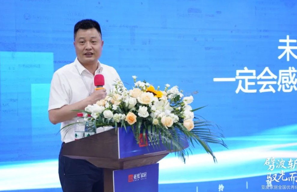 会议伊始,亚度家居董事长杜卫东上台致辞,他表示亚度从开始阶段到拎包入住领域,再到数字化转型,获得政府高度认可,这一切离不开经销商伙伴的支持与信任,也彰显了我们强大的韧性和创新能力。一路走来,亚度展现出了强大的韧性和创新能力,亚度家居的发展从无到有,从有到优,并取得了家居、数字化等行业的多个领先地位,在未来的发展中,亚度家居将继续努力提升设计能力、数字化智造能力以及服务能力。将继续发挥自身优势,在精装、整装领域以及工程渠道板块等方面持续探索创新,以实现更高质量的发展。