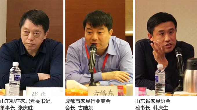 下午,山东银座家居与成都市家具商会业务座谈会在济南泉城大酒店召开。山东省家具协会秘书长韩庆生,山东银座家居党委书记、董事长张庆胜,总经理李玉成,副总经理杨聚,山东银座家居济南、淄博、威海、东营、临沂、滨州、菏泽、莱芜等店店长,与成都家具商会川派家居名品联盟考察团成员现场交流。
