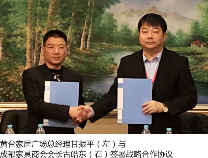 参观结束后,成都家具考察团与黄台家居广场召开了座谈会。黄台家居广场总经理甘振平与成都市家具行业商会会长古皓东签署了战略联盟合作协议,标志着成都家具商会川派家居名品联盟与黄台家居正式达成战略合作关系。