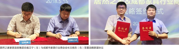 随后,居然之家与成都市家具行业商会战略签约仪式举行。成都家具商会会长古皓东代表川派家居名品联盟与居然之家家居连锁集团总裁王宁一同走上签约台,共同签署战略联盟合作协议,标志着川派家居名品联盟与居然之家正式达成战略合作关系。双方将加强联系,强强联合,共同开创合作共赢新局面。