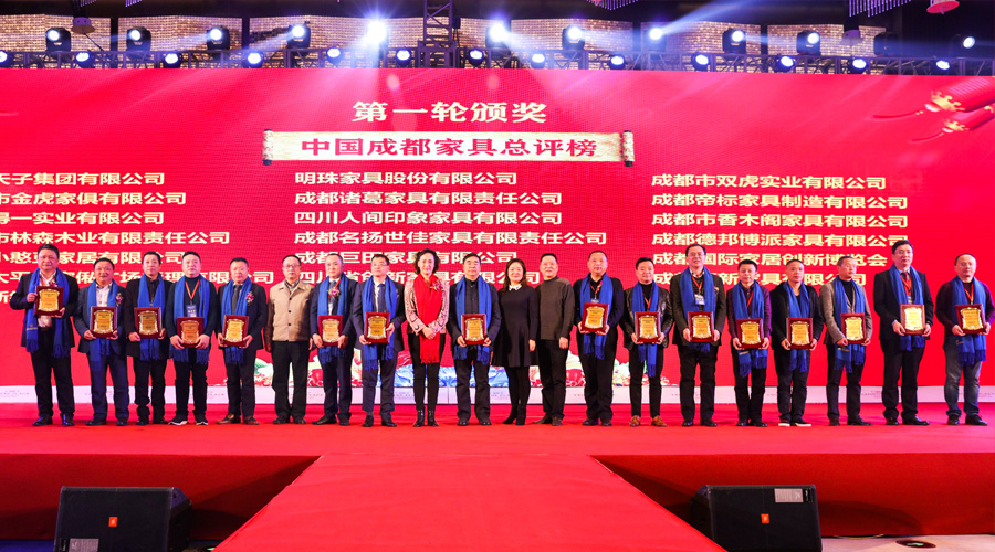 此次大会上,中国成都家具总评榜”分别揭晓了民用、定制、办公、卖场、材料配套企业中,畅销中国最具影响力品牌、最具市场影响力企业等多个奖项。省市党政部门领导上台,为获奖企业颁发了奖牌。