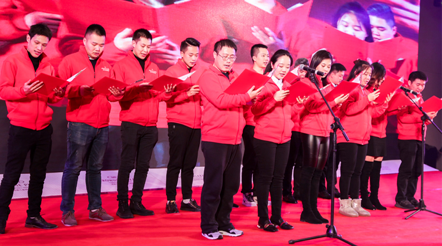 成都家具商会青年企业家协会成员们在晚会上集体亮相,表演了诗朗诵《飞扬的青春》以及合唱歌曲《明天会更好》,赢得了现场观众热烈的掌声。