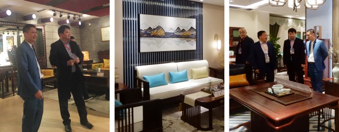 下午,考察团一行来到中国红木家具制造之都—— 中山市大涌镇,参观考察红古轩家具公司。广东省红木家具商会会长、中山市家具商会会长、红古轩家具总裁吴赤宇,中山市家具商会秘书长谢绮云热情接待了考察团,并陪同大家参观了红古轩家具展厅。