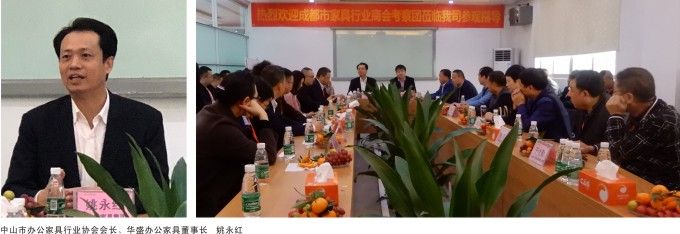 11月22日,考察团考察了中国办公家具重镇——中山市东升镇家具产业。上午第一站,考察团来到位于中山市东升镇的华盛办公家具公司,受到中山市办公家具行业协会会长、华盛办公家具公司董事长姚永红的热情接待。