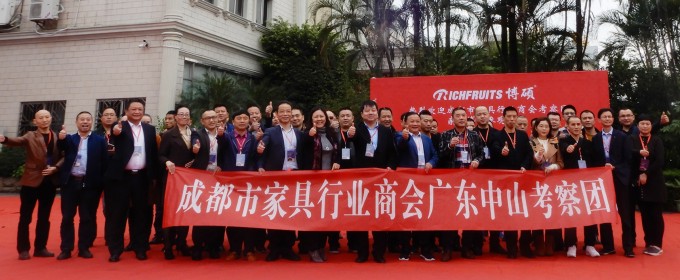 为学习广东家具企业先进的生产管理经验,促进两地家具行业的交流与合作,2017年11月20日至23日,成都市家具行业商会组织考察团赴广东中山参观考察。考察团由商会会长古皓东带队,成都明珠、天子、双虎、沃克、林森木业、更新、创新、永亨等60多位成都家具同仁参加了此次考察活动。