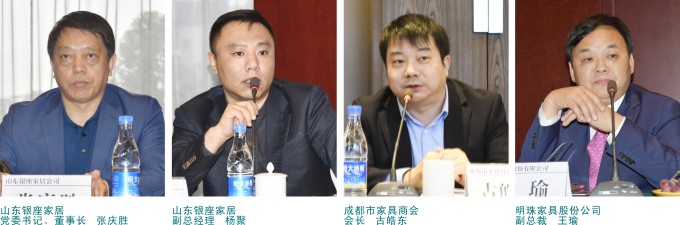 会上,成都明珠家具股份公司副总裁王瑜、沃克家居董事长谢建明、莱茵艾格家具董事长罗俊义、巨田家居董事长杨治国、蓝莲定制家具总经理郭兴旺、艺标家居总经理曾强等企业老总纷纷发表自己的观点。大家分析了当前的市场和企业面临的问题,并就如何拓展渠道、如何提升自我,提升品牌形象等问题,与山东银座家居负责人现场进行了交流。