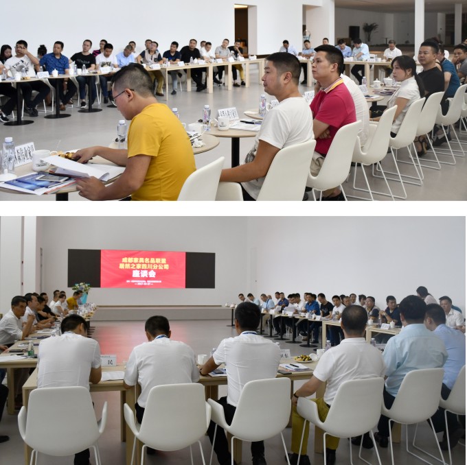 为帮助成都家居品牌企业拓宽市场销售渠道,9月7日下午,成都市家具行业商会联合居然之家四川分公司共同举办的“川派家居名品联盟与居然之家四川分公司座谈会”,在成都居然之家琉璃店7楼顶层设计中心召开。成都市家具行业商会会长古皓东,居然之家四川分公司总经理李卫东,居然之家成都琉璃店、国际馆▪家之尊、金沙店、德阳恒大店、宜宾店、广元店、绵阳店、巴中店等店店长,与成都明珠定制家居、帝标、沃克、得一、艺标、德邦博派、爱凡、香木阁、新美饰、美榜、帝安姆、莱茵艾格、品潮等30余家品牌家具企业代表齐聚一堂,共谋拓展,共商合作。会议由成都家具商会副秘书长张鹏主持。