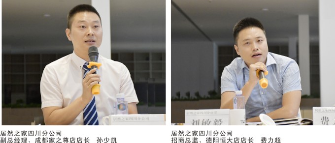 在自由交流环节,成都莱茵艾格、得一、香木阁、小憨豆、帝标、瑞邦等家具企业代表纷纷发言,分析当前的市场和企业面临的问题,并就如何拓展渠道、如何提升自我,加入一二级卖场等问题,与居然之家四川分公司负责人现场进行了碰撞与交流。