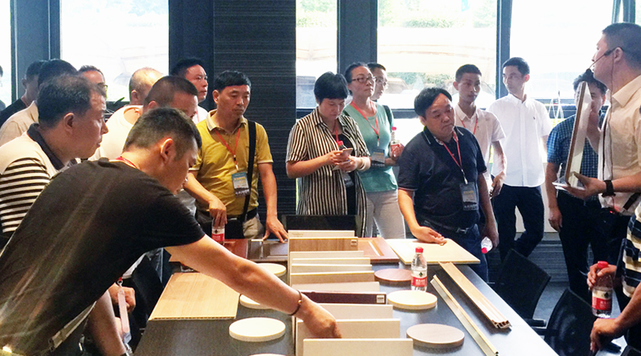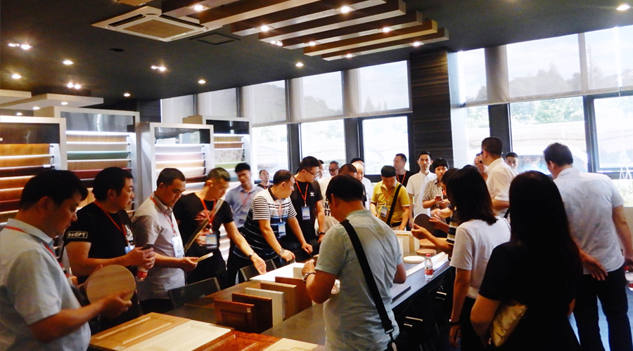 下午,考察团来到浙江临安帝龙新材料公司参观。在帝龙董事长姜飞雄的陪同下,考察团先后参观了帝龙展厅、装饰纸生产车间、检验中心等,考察成员对帝龙产品、生产工艺和流程进行了深入考察和了解。