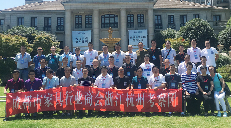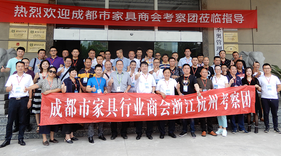 为学习浙江家具企业先进的生产管理经验,促进两地家具行业的交流与合作,2017年8月22日至25日,成都市家具行业商会组织考察团赴浙江杭州、海宁进行考察交流。考察团由商会会长古皓东、秘书长罗炜杰带队,先后考察了华旺新材料、帝龙新材料、圣奥办公家具、顾家家居、卡森沙发、宝莱克布艺、奥坦斯布艺、春光名美等8家优秀品牌企业。成都明珠家具副总裁王瑜、双虎沙发总经理应国富、帝标家具董事长郑红鑫等50多位成都家具同仁参加了此次考察活动。
