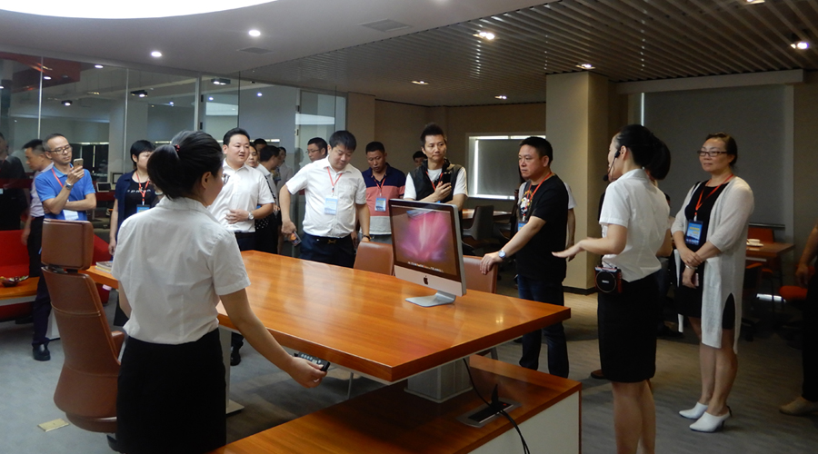 8月23日上午,考察团来到杭州市萧山区,走进中国办公家具标杆企业,浙江省家具协会理事长单位——浙江圣奥办公家具公司。圣奥董事长特别助理为大家分享了圣奥的企业文化、发展理念和发展历程,并带领大家到圣奥办公家具生产车间、实验室进行参观。
