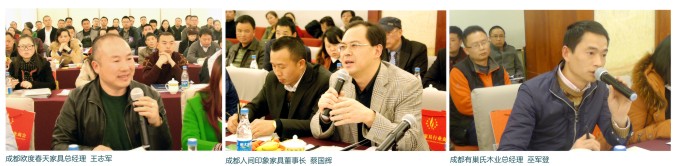 会上,成都市环保局领导就家具企业如何进行废气和粉尘治理、家具企业如何进行环评、环境监察执法的对象和步骤等家具企业重点关注的热点议题进行了梳理和讲解,并针对会议过程中企业现场提出的问题进行了耐心细致地解答。成都天子集团董事长杨家荣,成都明珠家具副总裁王瑜,成都双虎家具董事长尹显建,在会上就家具企业的环保问题与参会领导和参会企业代表进行了交流探讨。成都鑫威隆环保设备总经理史德刚、优品涂料总经理陈文斌、泰山环保设备总经理杨学辉、金臣环保设备总经理陈诠涛等成都家具行业部分品牌环保材料和设备供应服务商,也在现场就目前家具行业除尘和废气处理的新技术进行了介绍。