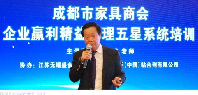 培训会上,沈文才老师分析了成都家具企业普遍存在的系统性管理问题,并就家具企业如何有效排除企业管理中的“通病”,如何提升产品品质、提高生产效率、降低生产成本等进行讲解。