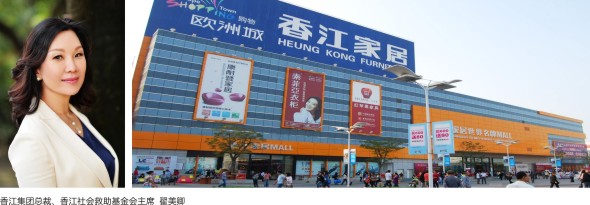 翟美卿创立了香江家居和金海马家居这两个家具行业的超级品牌。她做慈善有着鲜明的中国特色。