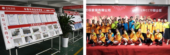 从2014年起,艺标家居就开始在工厂推行精益化管理,请了专业的精益管理咨询公司为工厂做咨询,并培养员工精益管理知识。在曾总看来,精益生产的核心是持续改善,降低成本,提高效率,需要全员参与,把它作为日常工作来做。