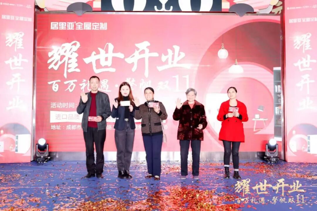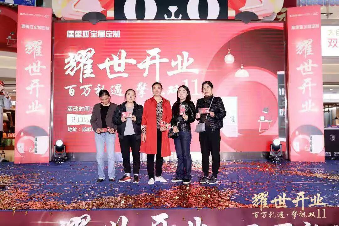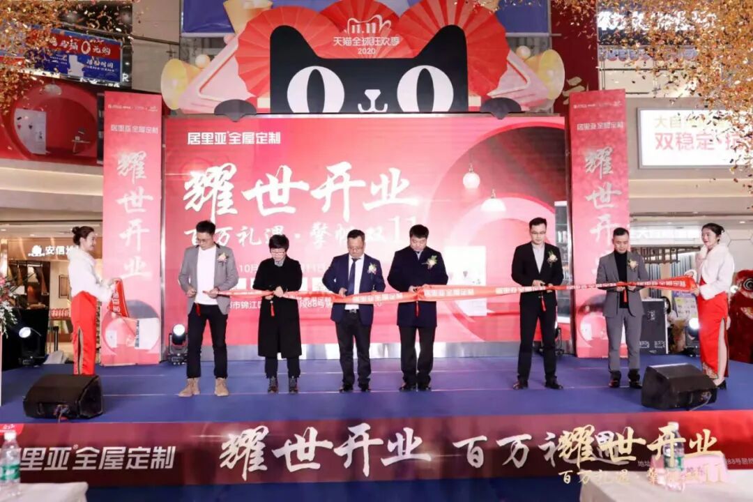 2020年11月11日,居里亚成都直营店在经过为期三个月的设计、培训、重装后擎帆起航,开启定制美学5.0新时代!在新的展馆中居里亚定制美学5.0生活将智慧家居、生活美学作为未来的发展方向,同时兼顾更多的年轻元素,使居里亚的产品生态圈跨入了一个全新的纪元,同时也将成为大咖设计师分享与交流前沿设计理念的定制平台,家居时尚风眼。居里亚集团董事长黄金、居里亚营销总经理张仕保、成都家具行业商会会长、川派家居名品联盟主席古皓东、居然之家四川琉璃店总经理朱庆虎、副总经理梦燕、居然之家四川分公司运营总监葛爱军、居然之家四川分公司招商总监费力超、中华衣柜网营销总经理戴慧、京东四川家居服务中心李文杰、居里亚达州总代理余红等嘉宾共同出席。众多行业友商及居里亚全国门店代表、粉丝客户齐聚一堂,共同见证了此次开业盛典。居然之家四川琉璃店总经理朱庆虎表示,居里亚一直以来就是居然之家的标杆品牌,随着今天居里亚5.0定制美学生活旗舰店的开业,不仅给居然之家商场品类结构注入了新的血液,更是为更多追求生活品质的消费者提供了多重可能性。未来,居然之家将继续携手居里亚重磅布局川内40大城市,继续共建渠道合作共赢。成都家具行业商会会长、川派家居名品联盟主席古皓东会长认为,18年以来,居里亚一直锐意进取,创新发展,在企业规模、产品布局、品牌实力、配套服务等都在一定程度上代表了川派定制的发展方向,特别是近几年,居里亚的发展是行业有目共睹的,在川派乃至全国的家居行业中都起到了模范带头作用。此次成都直营店的开业也将为川派定制的发展掀开崭新的一页,为实现川派定制家居再次快速发展做出新的贡献。成都家具行业商会会长、川派家居名品联盟主席 古皓东黄总介绍,居里亚直营店严格秉承”以客户为中心”的建店理念,依照专有设计标准,营造出一个轻松休闲的家居空间,以“心、技、体”为标准,展现出家居待客的全新服务理念,以丰富的产品,领先的设计为用户提供满意的家居服务,让顾客感觉舒适贴心,温暖如家。本次成都直营店的开业,将不仅是居里亚践行“开放赋能”和“样板打造”战略的重大成果,同时也是在向消费者展示居里亚5.0“无界定制”时代的全新消费新体验,未来成都直营店的模式将会快速的拓展到全国,实现几何级增长。黄金,古皓东,张仕保,朱庆虎,余红,费力超等到场嘉宾受邀上台,携手为居里亚直营店开幕仪式剪彩,共同见证此次开业盛况。 人气女歌手楠楠带来了《不潮不花钱》、多首歌曲串烧。