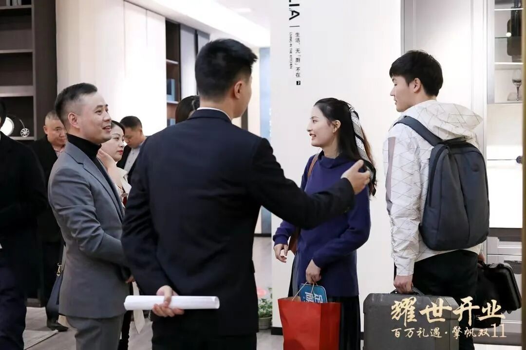 活动现场,各位嘉宾和客户一同观看表演并与主持人互动抽奖,将此次活动气氛推向高潮。由于开业期间正是双十一全球购物节,所以本次开业活动也带来了劲爆让利促销活动,给消费者提供极其给力的优惠、赠品,签到就可领好礼,现场抽大奖,爆品榻榻米99元,橱柜2990元秒杀,全屋定制仅要7880元,优惠力度史无前例,引起现场客户排起了长龙,争相抢购满载而归!